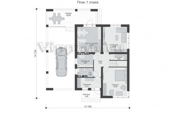 | Размеры дома: | 14.73м×13.78м |